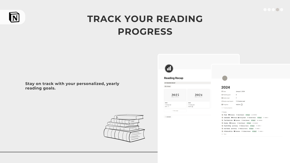 This Notion template is designed to do just that, offering you a way to track your reading journey and hopefully inspire you to dive back into books (if you’re not already), just like it did for me.