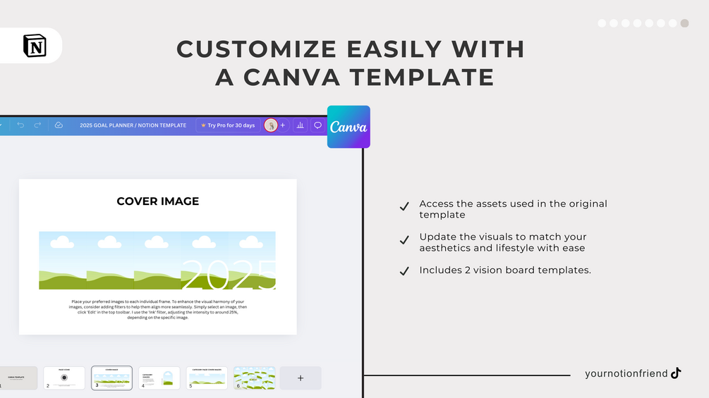 Additionally, this template has a link to the original Canva template, allowing you to customize the visuals to match your aesthetics more easily.