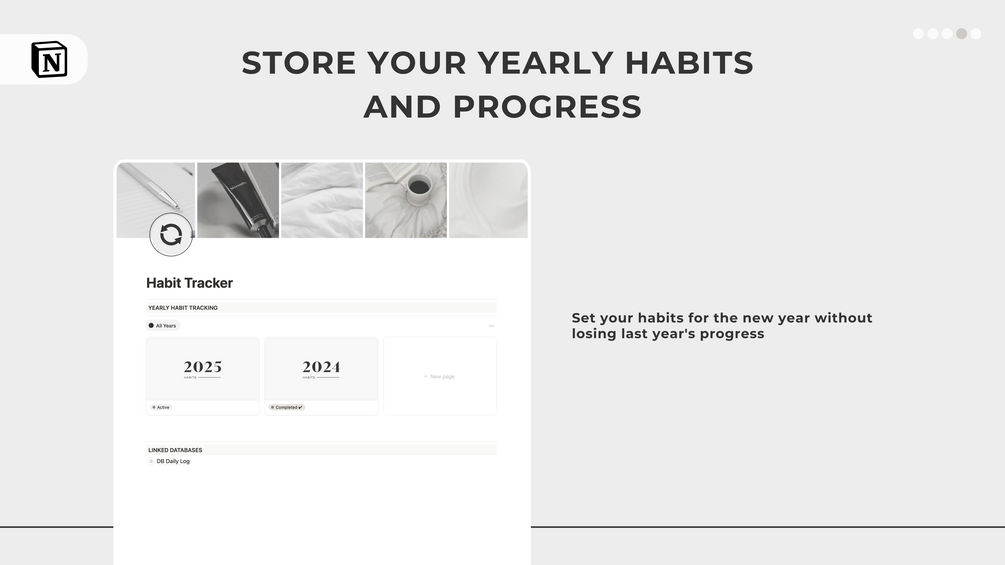 Yearly Overview: View your yearly progress for each habit in a clear, visual database overview.
