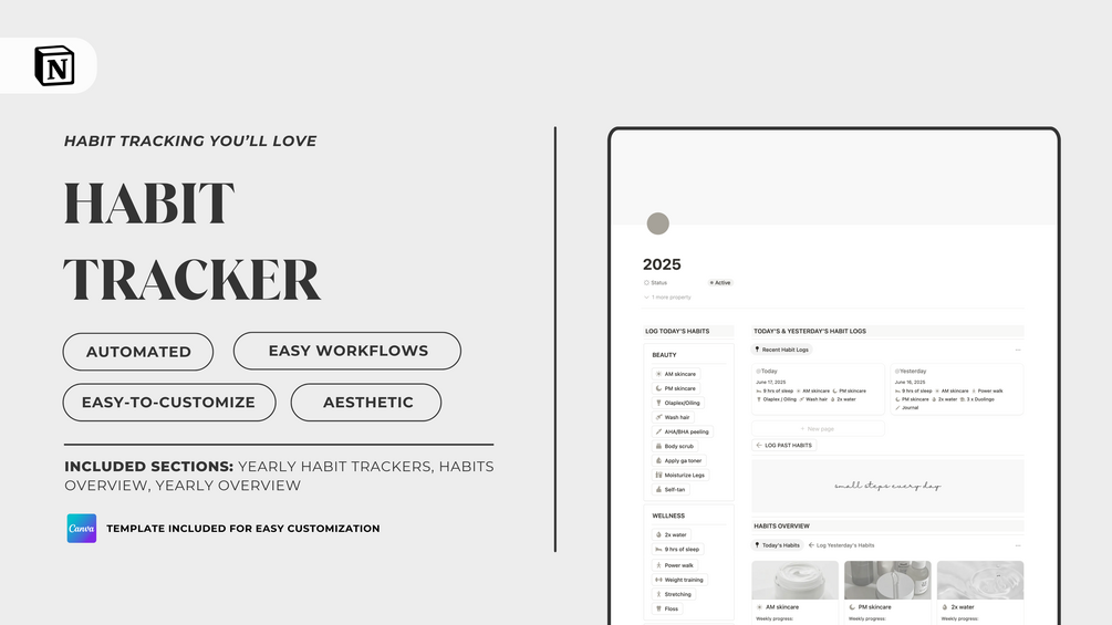 Looking for a simple system that will inspire and motivate you to achieve your habit goals? This template might be just what you're looking for. ✨