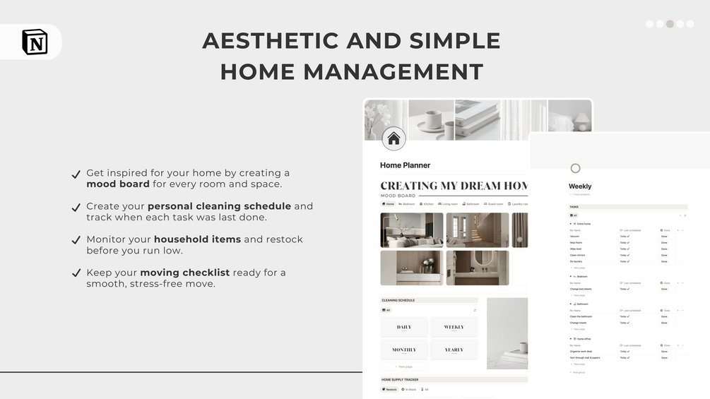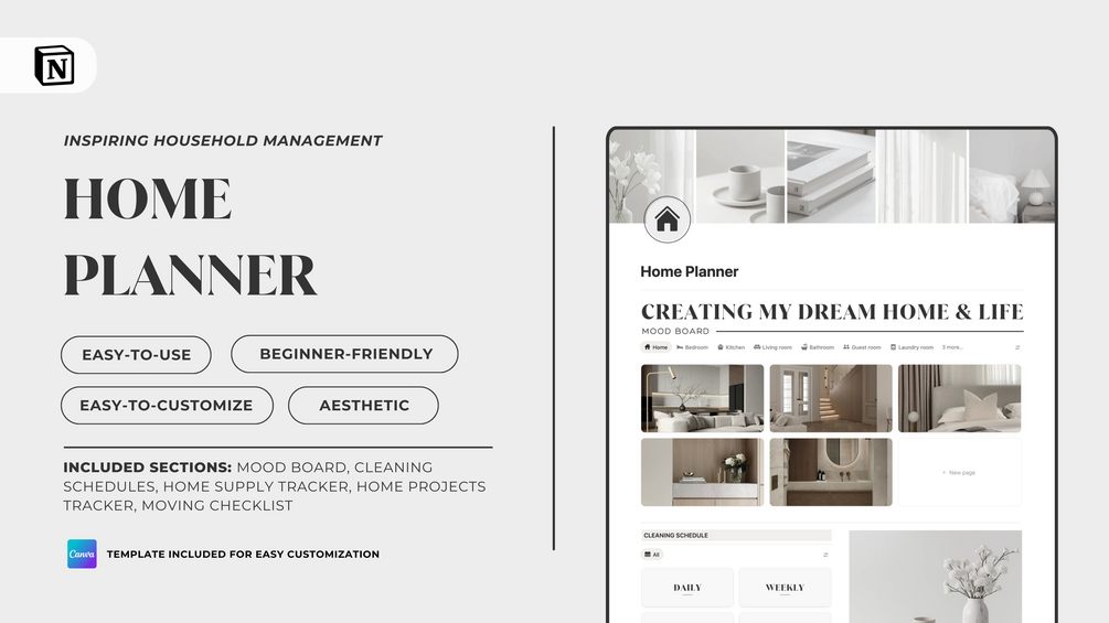 Organize cleaning routines, home tasks, and inspiration in one place. Fully customizable and designed to fit any lifestyle, it helps you spend less time managing your home and more time enjoying it.